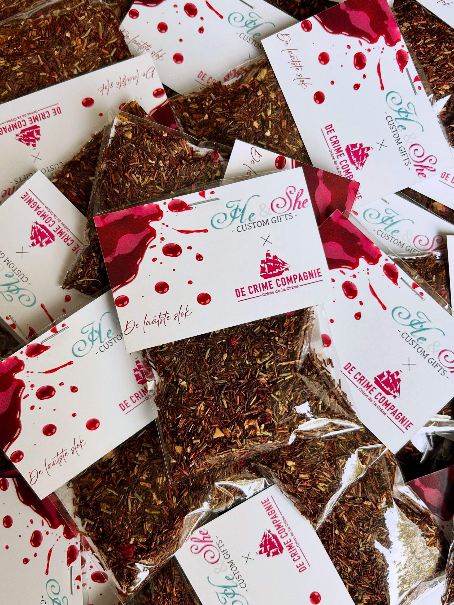 Ingrediënten: rooibos, gember, rozemarijn, rozenblaadjes en sinaasappelolie.